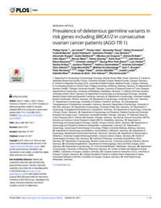 | Title: | Prevalence of deleterious germline variants in risk genes including BRCA1/2 in consecutive ovarian cancer patients (AGO-TR-1) |