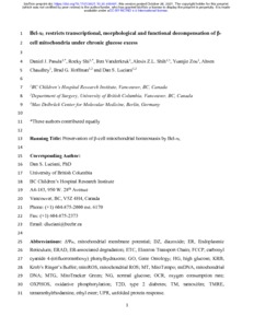 | Title: | Bcl-xL restricts transcriptional, morphological and functional decompensation of β-cell mitochondria under chronic glucose excess |
