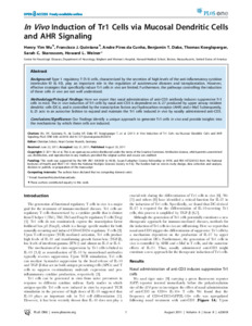 | Title: | In vivo induction of Tr1 cells via mucosal dendritic cells and AHR signaling. |