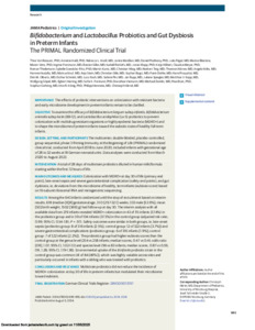 | Title: | Bifidobacterium and lactobacillus probiotics and gut dysbiosis in preterm infants: the PRIMAL randomized clinical trial |