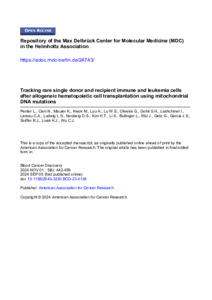 | Title: | Tracking rare single donor and recipient immune and leukemia cells after allogeneic hematopoietic cell transplantation using mitochondrial DNA mutations |