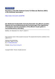 | Title: | Der Stellenwert funktioneller Outcome-Parameter des afferent visuellen Systems bei neuroinflammatorischen Erkrankungen [The significance of functional outcome parameters of the afferent visual system in neuroinflammatory disorders] |