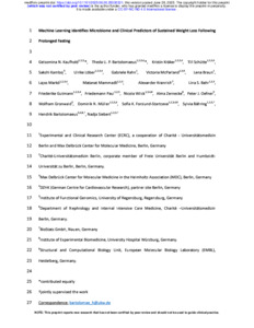 | Title: | Machine learning identifies microbiome and clinical predictors of sustained weight loss following prolonged fasting |