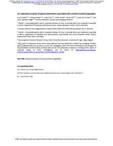 | Title: | An explorative analysis of plasma biomarkers associated with cerebral amyloid angiopathy |