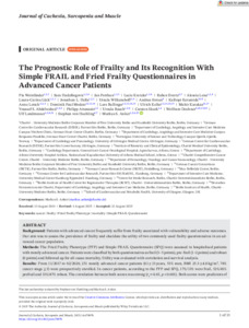 | Title: | The prognostic role of frailty and its recognition with simple FRAIL and fried frailty questionnaires in advanced cancer patients |