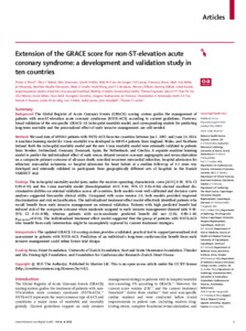 | Title: | Extension of the GRACE score for non-ST-elevation acute coronary syndrome: a development and validation study in ten countries |