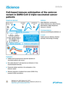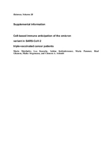 | Title: | Cell-based immune anticipation of the omicron variant in SARS-CoV-2 triple-vaccinated cancer patients |
