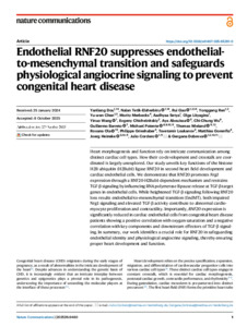 | Title: | Endothelial RNF20 suppresses endothelial-to-mesenchymal transition and safeguards physiological angiocrine signaling to prevent congenital heart disease |