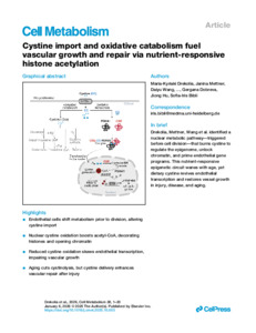 | Title: | Cystine import and oxidative catabolism fuel vascular growth and repair via nutrient-responsive histone acetylation |