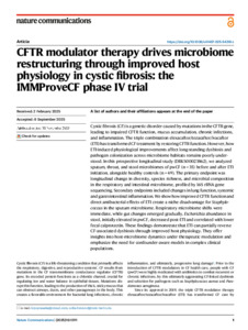 | Title: | CFTR modulator therapy drives microbiome restructuring through improved host physiology in cystic fibrosis: the IMMProveCF phase IV trial |