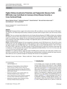 | Title: | Higher dietary insulinemic potential, and triglyceride-glucose (TyG)-BMI index may contribute to coronary artery disease severity: a cross-sectional study |