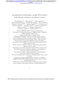 | Title: | Identification of full-length circular RNAs linked with therapy resistance of pediatric cancers |