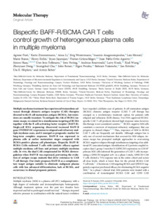 | Title: | Bispecific BAFF-R/BCMA CAR T cells control growth of heterogeneous plasma cells in multiple myeloma |