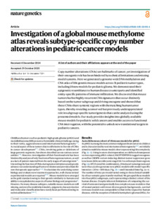 | Title: | Investigation of a global mouse methylome atlas reveals subtype-specific copy number alterations in pediatric cancer models |