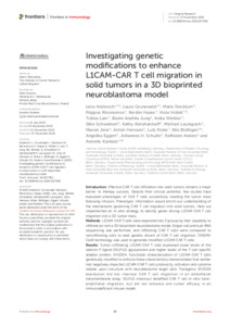 | Title: | Investigating genetic modifications to enhance L1CAM-CAR T cell migration in solid tumors in a 3D bioprinted neuroblastoma model |