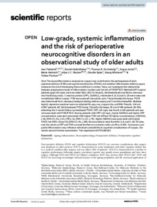 | Title: | Low-grade, systemic inflammation and the risk of perioperative neurocognitive disorders in an observational study of older adults |