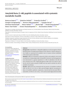 | Title: | Amyloid-beta (1-40) peptide is associated with systemic metabolic health |