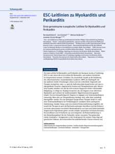 | Title: | ESC-Leitlinien zu Myokarditis und Perikarditis: erste gemeinsame europäische Leitlinie für Myokarditis und Perikarditis [ESC guidelines on myocarditis and pericarditis: first combined European guidelines for myocarditis and pericarditis] |