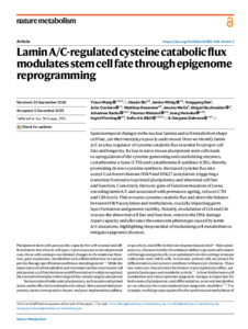 | Title: | Lamin A/C-regulated cysteine catabolic flux modulates stem cell fate through epigenome reprogramming |