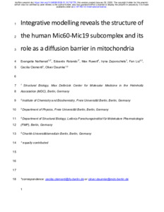 | Title: | Integrative modelling reveals the structure of the human Mic60-Mic19 subcomplex and its role as a diffusion barrier in mitochondria |