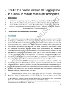 | Title: | The HTT1a protein initiates HTT aggregation in a knock-in mouse model of Huntington's disease |