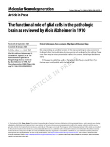 | Title: | The functional role of glial cells in the pathologic brain as reviewed by Alois Alzheimer in 1910 |