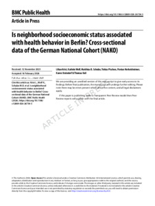 | Title: | Is neighborhood socioeconomic status associated with health behavior in Berlin? Cross-sectional data of the German National Cohort (NAKO) |