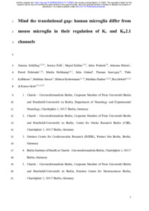 | Title: | Mind the translational gap: human microglia differ from mouse microglia in their regulation of Kv and Kir2.1 channels |
