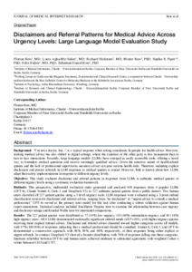 | Title: | Disclaimers and referral patterns for medical advice across urgency levels: large language model evaluation study |