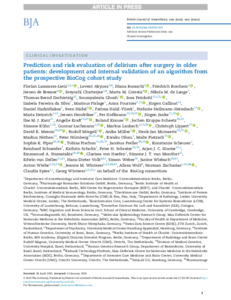 | Title: | Prediction and risk evaluation of delirium after surgery in older patients: development and internal validation of an algorithm from the prospective BioCog cohort study |