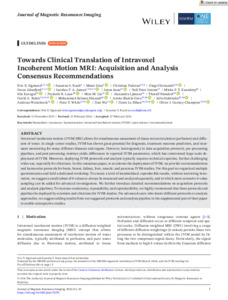 | Title: | Towards clinical translation of intravoxel incoherent motion MRI: acquisition and analysis consensus recommendations |