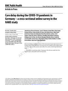 | Title: | Care delay during the COVID-19 pandemic in Germany - a cross-sectional online survey in the NAKO study |
