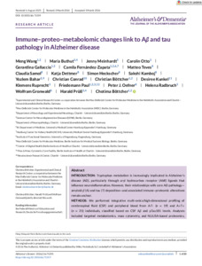 | Title: | Immune–proteo–metabolomic changes link to Aβ and tau pathology in Alzheimer disease |